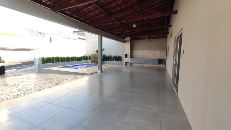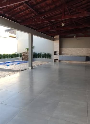 Residência de alto padrão com ambientes amplos, acabamento refinado e área de lazer completa. Perfeita para quem busca conforto e privacidade. A casa conta com piscina privativa, área gourmet com churrasqueira, cozinha planejada, armários embutidos e garagem para 4 carros.